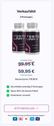 TestoLink™ enthält eine ausgewogene Mischung aus natürlichen Extrakten, darunter Maca, Ginseng, L-Arginin und weitere pflanzliche Inhaltsstoffe, die zur Unterstützung der männlichen Leistungsfähigkeit beitragen können.